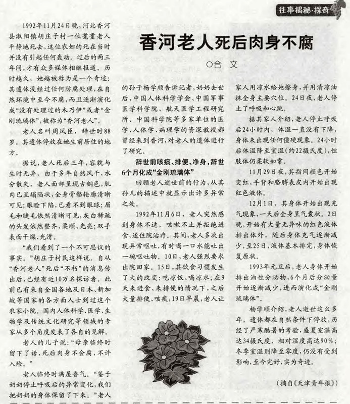 > 《天津青年报》:香河老人死后肉身不腐
