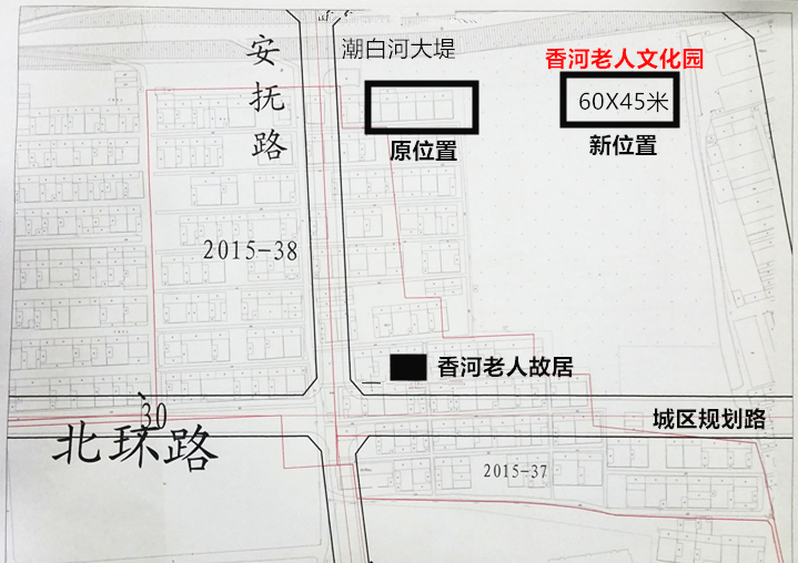 由于园区建设用地一直没有最终确定,工程迟迟没有开工。后经过反复协调商量,对园区用地的位置做了一些调整,近期终于落实了“香河老人文化园”的建设用地(图2、3)。