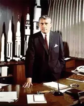 华纳.冯.布劳恩于1964年5月在马歇尔太空飞行中心办公室内