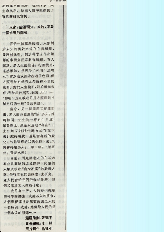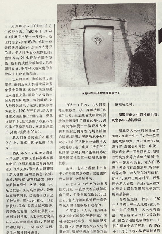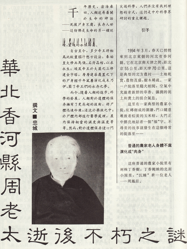 > 华北香河县周老太逝后不腐之谜 《中华儿女》1994.3