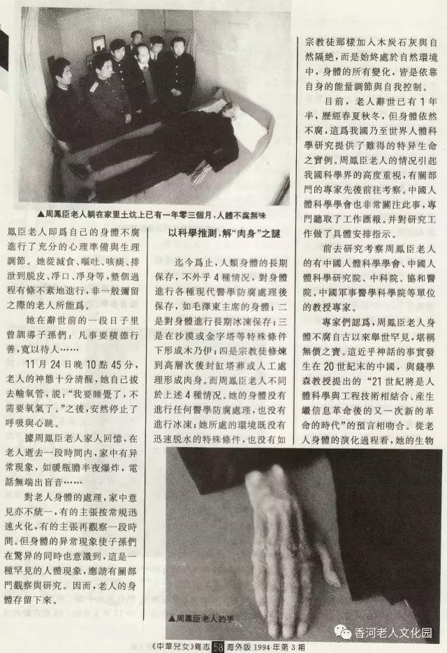 华北香河县周老太逝后不腐之谜 《中华儿女》1994.3