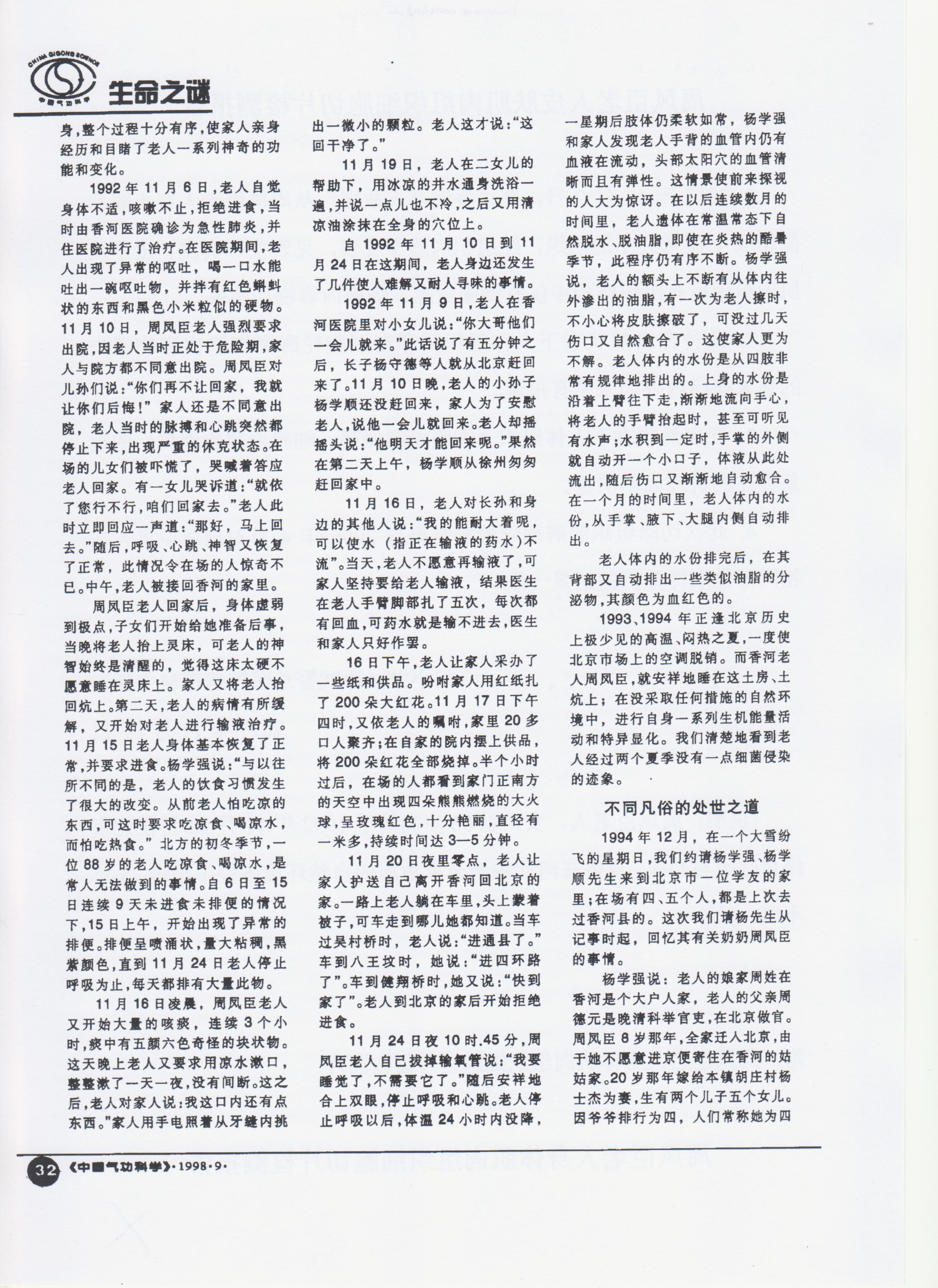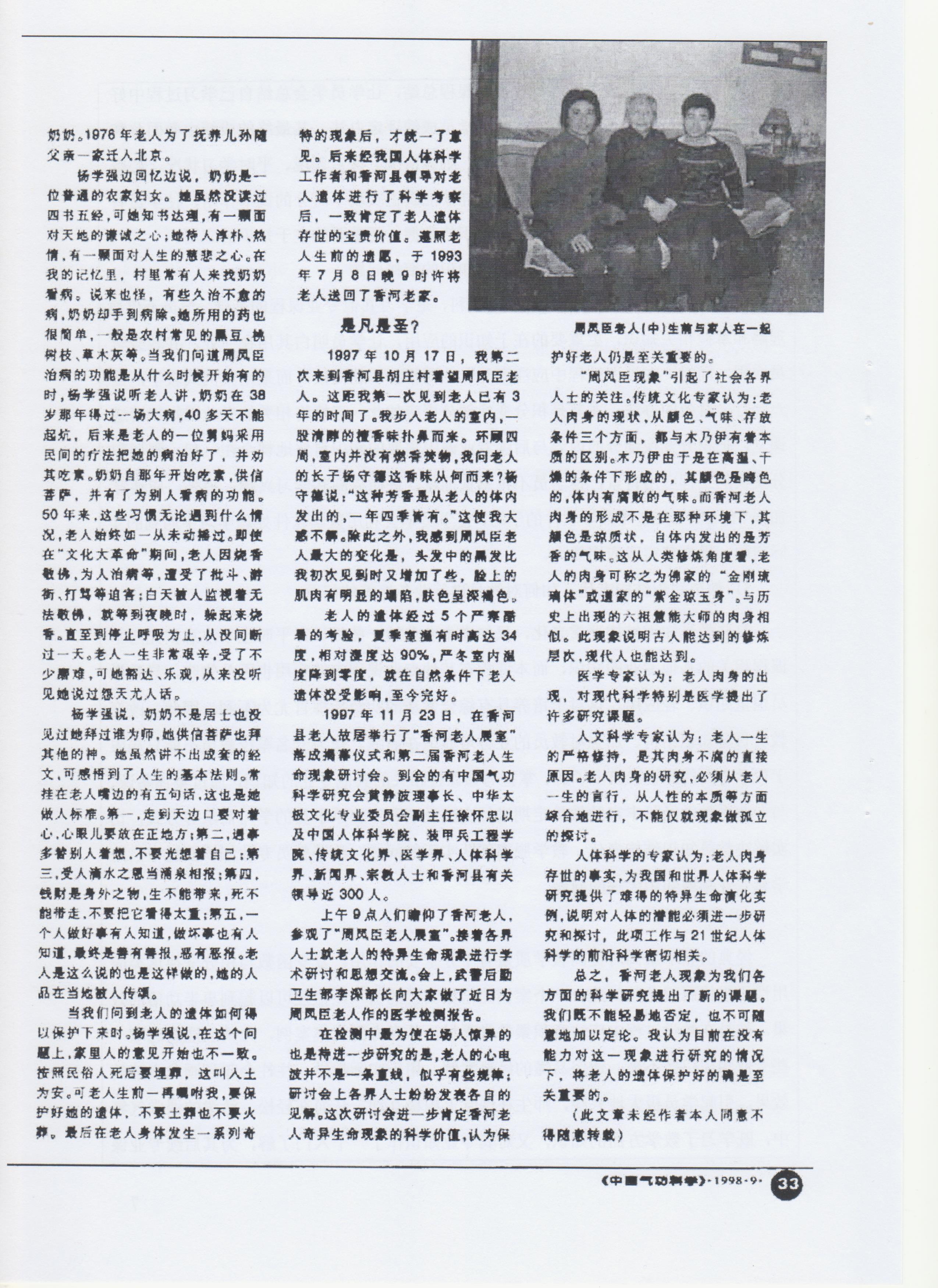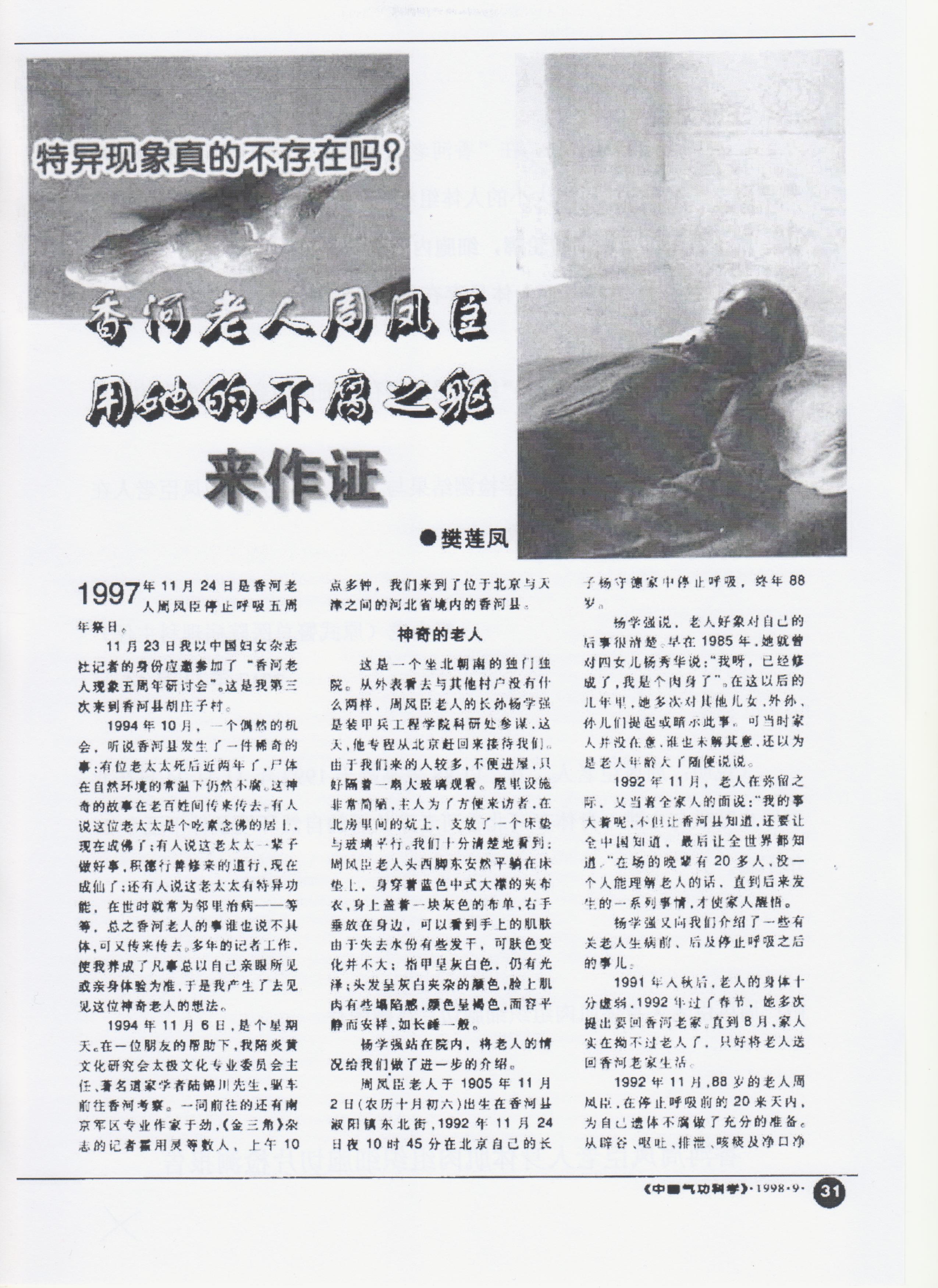 樊莲凤:香河老人周凤臣用她的不腐之躯来作证(1998.9)