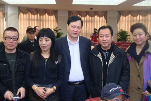 2009年3月8日乌尔根(左一)、唐雨(中)等特异功能人在人体科学30周年座谈会上