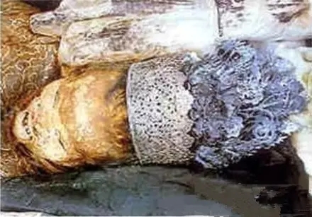 这是一具唐朝女尸,出土时头顶凤冠,珠宝玉石镶嵌其间,颇有贵夫人的气派。当时出土时原本一脸忧愁,但是当尸体被抬出墓后,忽然表情变为微笑,或许她在对您微笑呢!