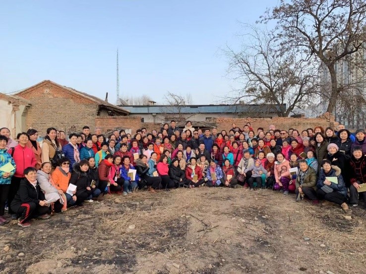 瞻仰香河老人不朽肉身之后,刘尚林董事长与老人的孙子孙媳以及参与保护和宣传老人不朽肉身的几位教授合影 摄影 吴弘习