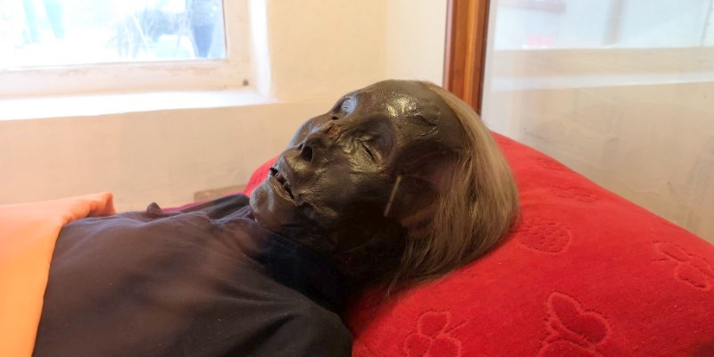 之后,我们随着香河老人的家人瞻仰了老人肉身。我们目睹了经过二十六年的春夏秋冬,至今保存完好无损的肉身,令人惊叹不止。
