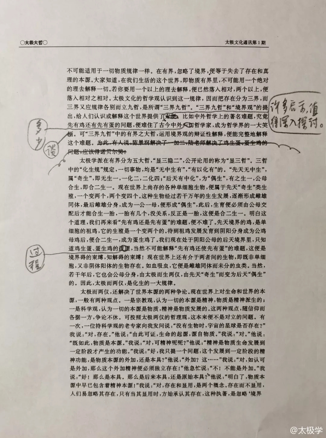 哲学发展到今天,仍未能逾越古哲的藩篱!但是,哲学还是在进步,太极学三界九晳的提出,便是一次更新。人类的哲学,还将进步,直至最终把握自然,这便是古哲所说的“大道”!人类是三才之介,应当具有这种本能。