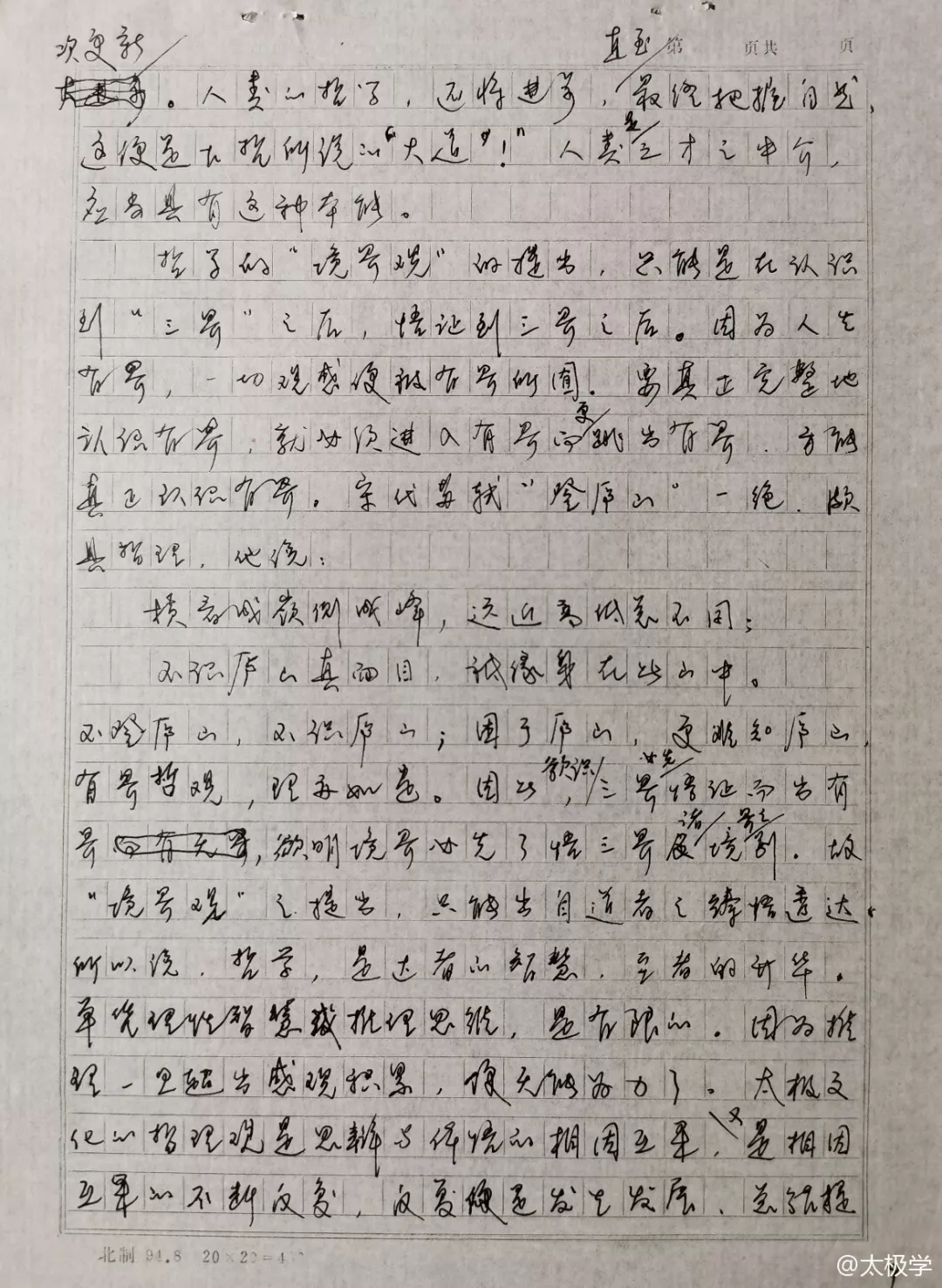 不登庐山,不识庐山;困于庐山,更难知庐山。有界哲观,理义如是。因此,欲识三界,必先悟证而出有界;欲明境界,必先了悟三界诸境界之别。故境界观之提出,只能出自道者之臻悟透达。所以说,哲学,是达者的智慧,至者的升华。单凭理性智慧或推理思维,是有限的。因为推理一旦超出感官积累,便无能为力了。太极文化的哲理观是思辨与体悟的相因互果,又是相因互果的不断反复。反复便是发生发展,总结提高的交替。当然,这一切也还是相对的。人类对存在的认识,存在对哲理的升华,都不应是固定或有限的。