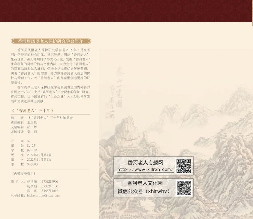 目前,《“香河老人”三十年》一书已编印完成,作为纪念“香河老人”肉身存世30周年的贡礼,奉献给关心、关注、支持、帮助“香河老人”的社会各界人士和广大读者。